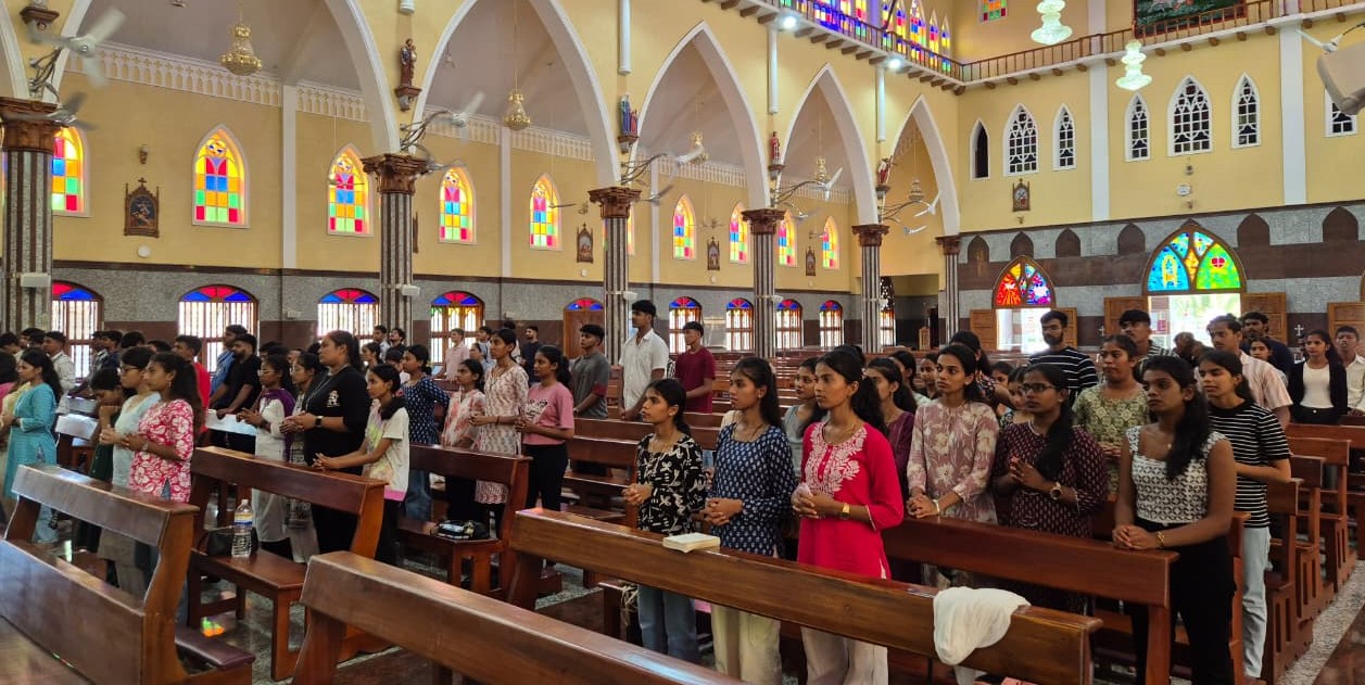 The pilgrimage was conducted under the leadership of Rev. Fr. Wilson D’Souza, Deanery Youth Coordinator, and office bearers of deaneries. The youth experienced deep spiritual enrichment through various prayer moments. The Holy Eucharist was celebrated by Rev. Fr. Stewart Fernandes and concelebrated by Rev. Fr. Wilson D’Souza. The participants also prayerfully took part in the Way of the Cross, reflecting on the passion of Christ, and gathered for the Rosary in the evening, strengthening their unity in prayer.